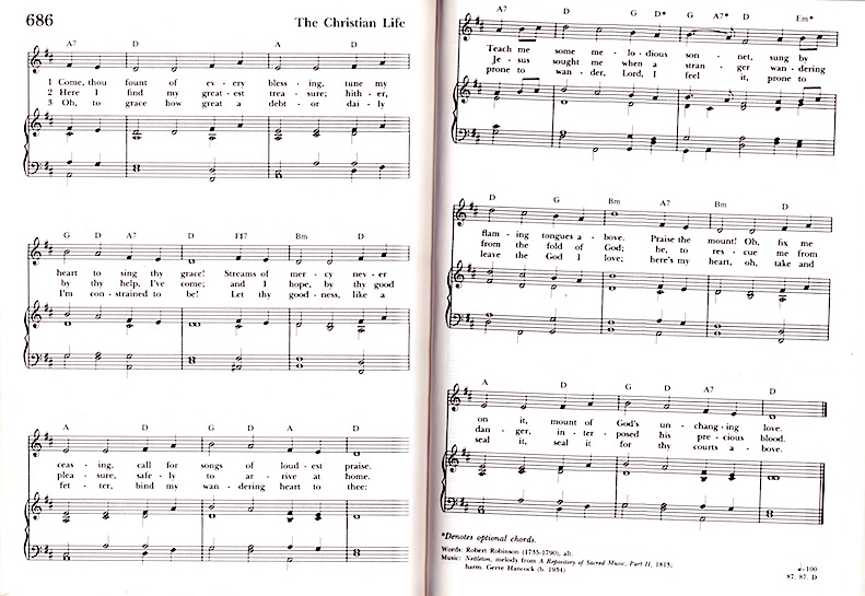 Come, thou fount of every blessing tune my heart to sing thy grace streams of mercy, never ceasing call for songs of loudest praise teach me .